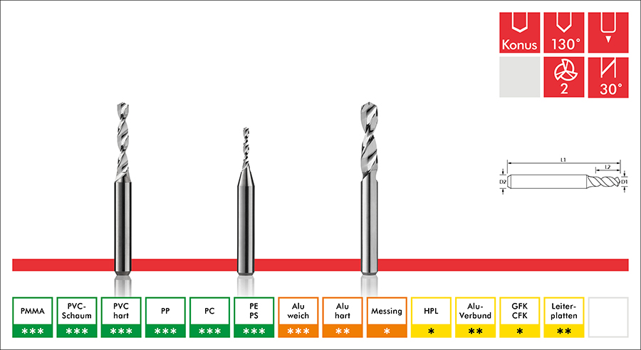 Artikel-Nr. | D1 – Ø Schneide | D2 – Ø Schaft | L2 – Länge Schneide | L1 – Länge Gesamt | Bemerkungen | Preis EUR |