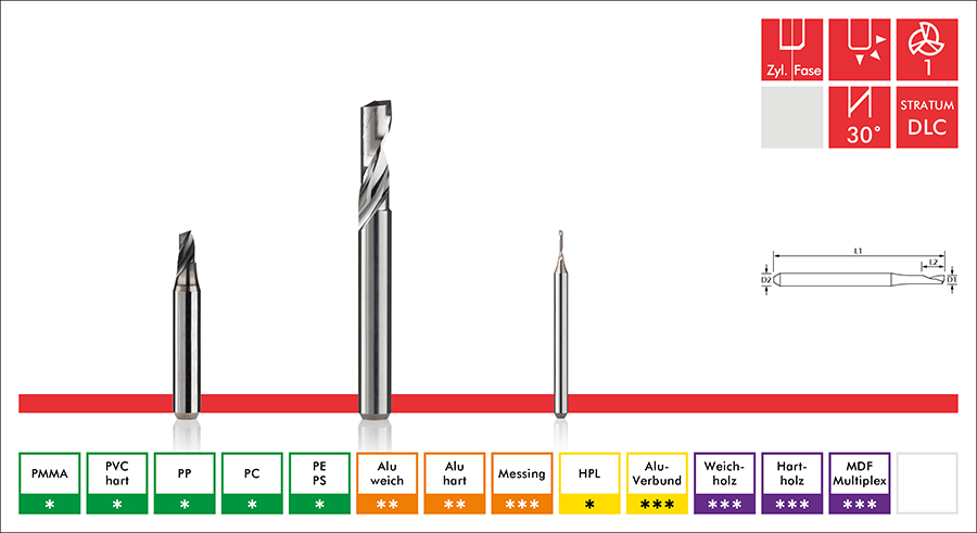 Artikel-Nr. | D1 – Ø Schneide | D2 – Ø Schaft | L2 – Länge Schneide | L1 – Länge Gesamt | Beschichtung | Bemerkungen | Preis EUR |
