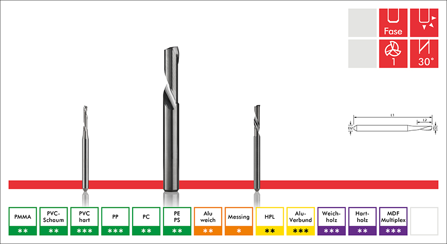 Artikel-Nr. | D1 – Ø Schneide | D2 – Ø Schaft | L2 – Länge Schneide | L1 – Länge Gesamt | Preis EUR |