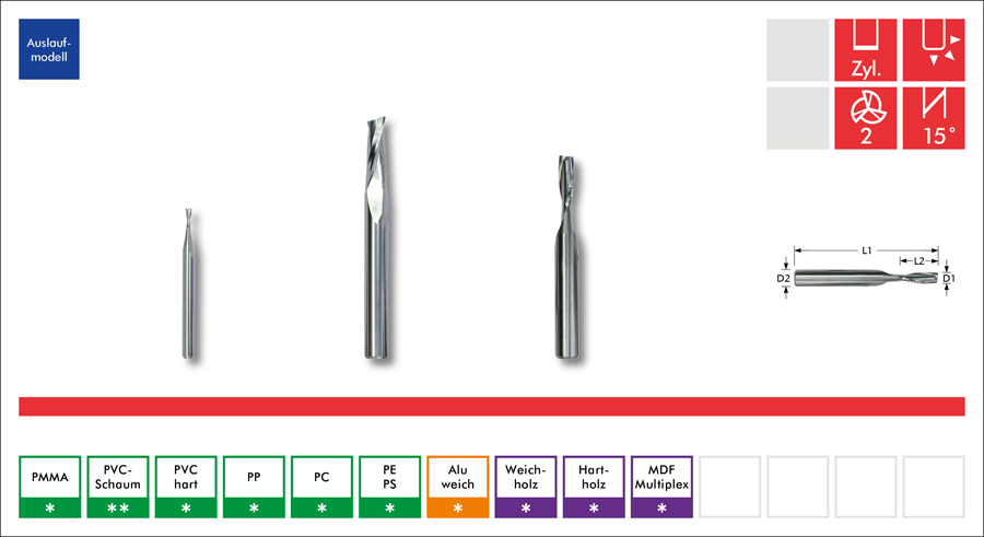 Artikel-Nr. | D1 – Ø Schneide | D2 – Ø Schaft | L2 – Länge Schneide | L1 – Länge Gesamt | Preis EUR |