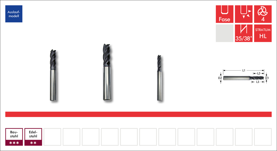 | Artikel-Nr. | D1 – Ø Schneide | D2 – Ø Schaft | L2 – Länge Schneide | L3 – Freischliff | L1 – Länge Gesamt | Preis EUR | Ihr Preis in EUR | -5% ≥ 2 | -10% ≥ 5 | -15% ≥ 10 | -20% ≥ 20 | Bestellmenge | ||
