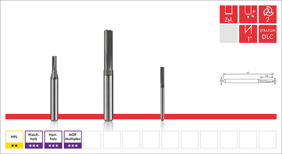 Artikel-Nr. | D1 – Ø Schneide | D2 – Ø Schaft | L2 – Länge Schneide | L1 – Länge Gesamt | Preis EUR |