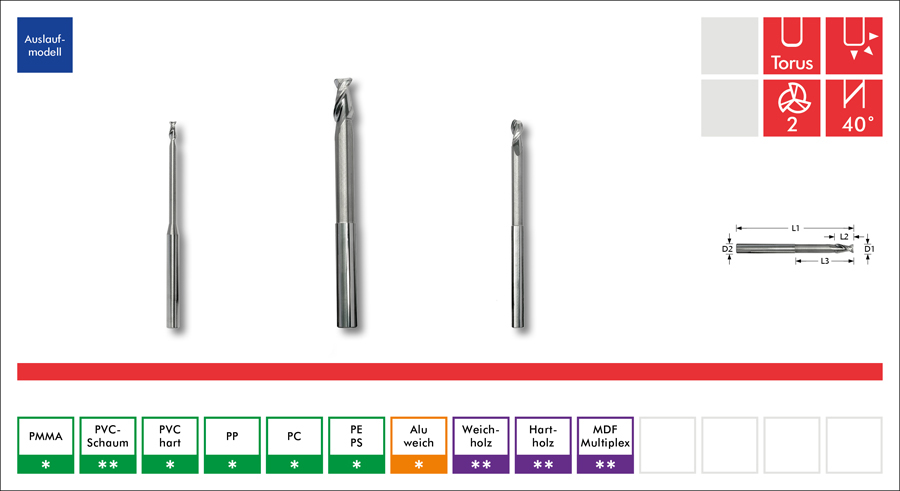Artikel-Nr. | Eckenradius | D1 – Ø Schneide | D2 – Ø Schaft | L2 – Länge Schneide | L3 – Freischliff | L1 – Länge Gesamt | Preis EUR |